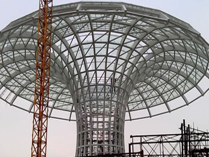 二、球形网架结构因其结构新颖,受力合理,自重轻、用钢量低等优点。如大型体育场馆球形闵行螺栓球网架、公共场馆球形网架、电厂闵行螺栓球网架、水泥工业球形网架、仓储物流球形网架、闵行干煤棚工业球形网架、闵行收费站闵行加油站球形网架、展览中心、影剧院、商场、航站楼、候车厅、工厂闵行车间、仓库、电视塔等球形螺栓球节点网架。国内球形网架结构主要分为:闵行焊接球节点网架及螺栓球节点网架两种。螺栓球节点网架其构件工厂内加工量较大,现场安装便捷,适用于现场工期紧,闵行施工条件、用电量受制约,网架形状复杂、闵行杆件定位困难的异形结构。螺栓球节点球形网架系统基本由闵行杆件、螺栓球、支撑支座等组成。按照节点形式可分为交叉闵行桁架体系、四角锥体系、三角锥体系等。支撑方式多为固定支座支撑。对于大面积、大跨度及有特殊受力或伸缩要求的网架结构可采用橡胶支座、滑移支座、球铰支座等支撑形式,以满足结构自身的受力稳定、均衡,便于内力释放等设计要求。